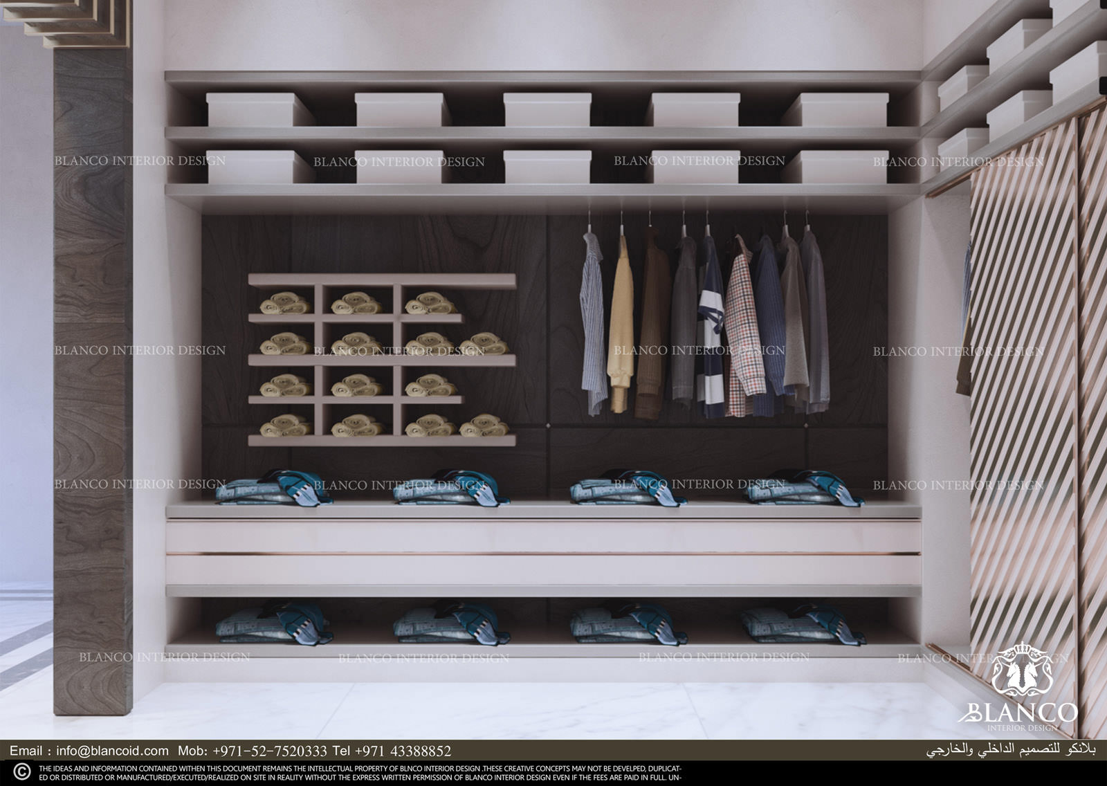 منطقة تبديل الملابس تحتاج إلى أناقة في التصميم و دقة في المساحات لكونها غرفة تحتوي على المتطلبات اليومية. لذلك، نحن حريصون على جعلها غرفة استثنائية في التصميم و التنظيم تبعاً لراحة العميل.